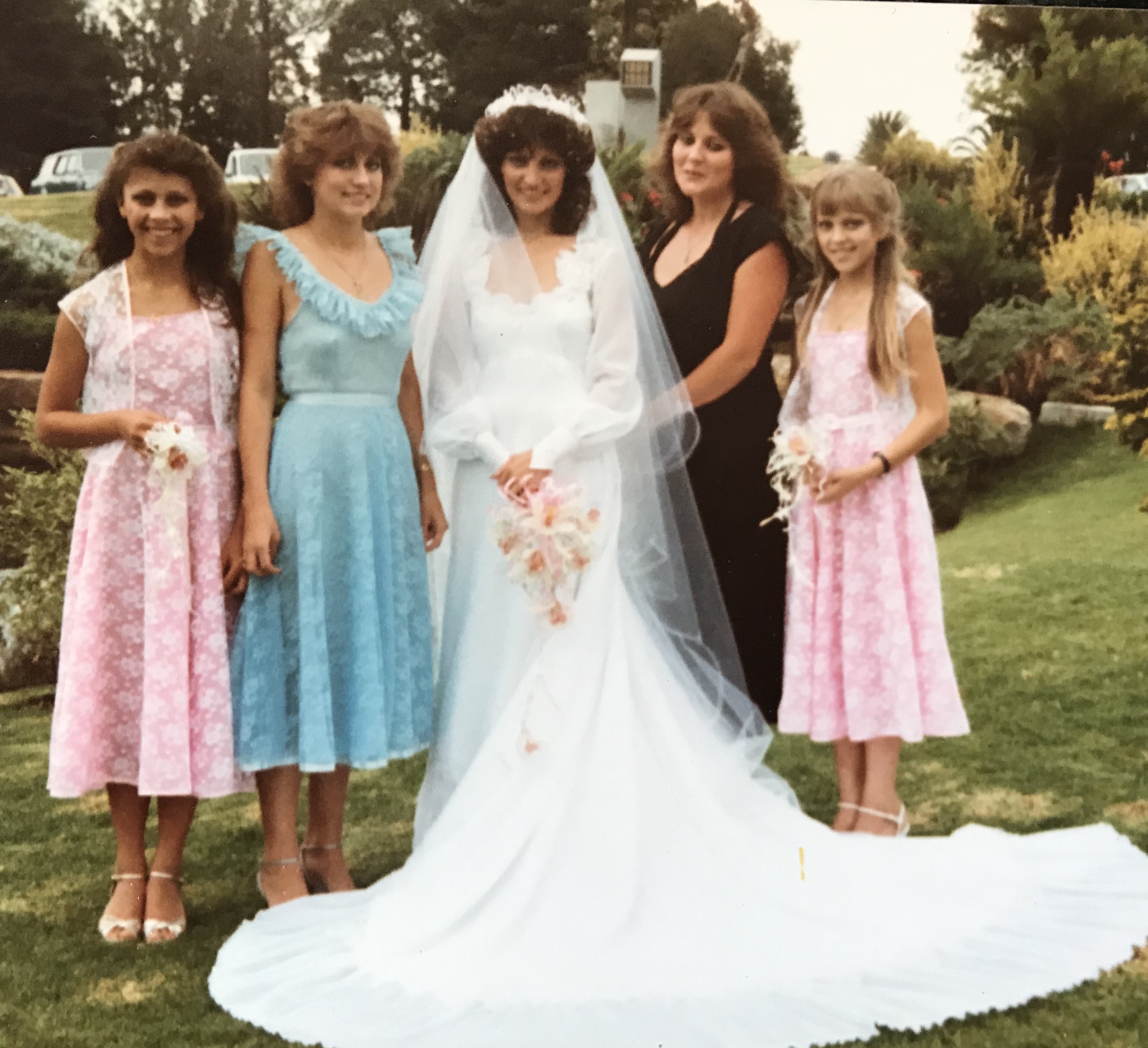 My troufoto’s is in die tagtigs geneem, 30 Januarie 1982 om presies te wees. Hier is ek saam met my vier susters.