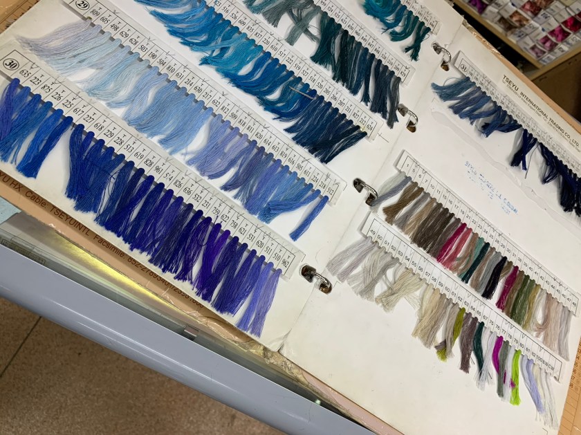 Ek het toe die materiaal vir die romp en bloes gekry. En dit lyk my ek het te lanklaas klere gemaak. Want ek stap nooit uit ‘n materiaalwinkel sonder die regte kleur garing in my sakkie nie. Die keer het ek wel. Miskien omdat manlief saam was?
